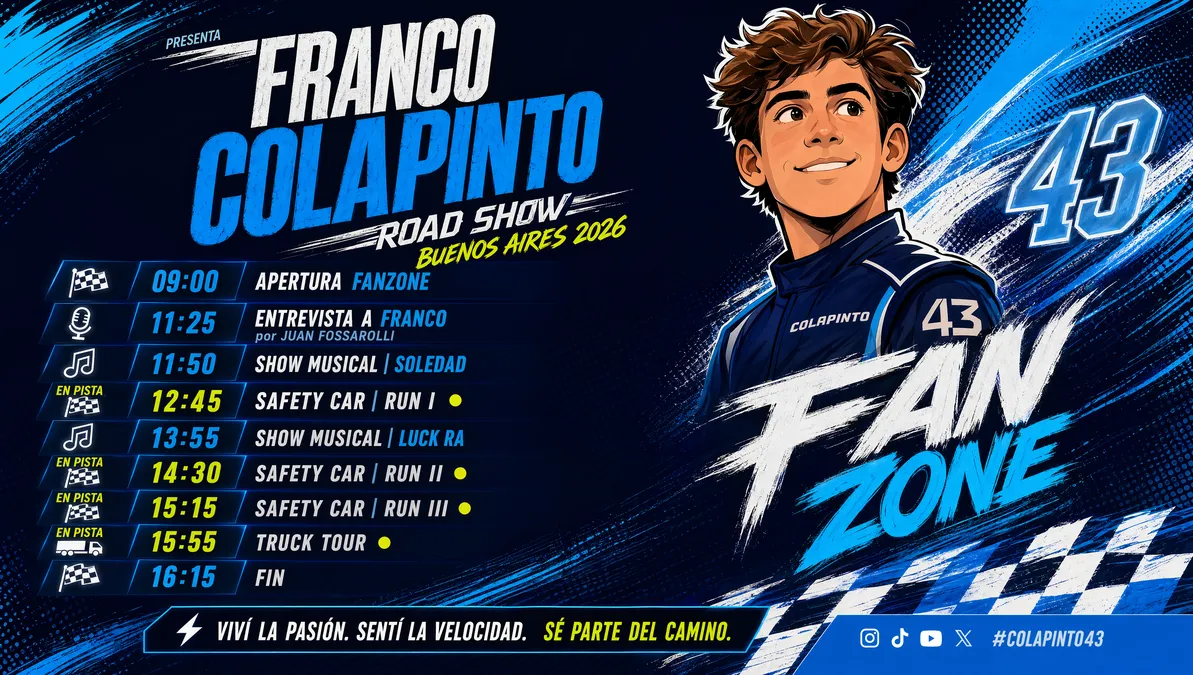 Más allá de las corridas, los shows y las activaciones, lo que el Road Show propone es una postal única: miles de personas en Avenida del Libertador, banderas argentinas ondeando al ritmo de los motores de Fórmula 1, y un piloto que se convirtió en referente de una nueva generación de argentinos conectados con el deporte global. La combinación de automovilismo de elite, música popular y entrada libre en gran parte del evento apunta a construir una jornada masiva que quedará en la memoria de quienes puedan estar ahí. La cita es el domingo 26 de abril, desde las 08:30, en Avenida del Libertador y Figueroa Alcorta. El cierre está previsto para las 16:15.