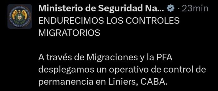 En las últimas horas se realizó en Liniers (CABA) un operativo de control de permanencia para verificar la situación migratoria de personas extranjeras. Este tipo de procedimientos no se hace en la frontera, sino dentro del territorio, y apunta a determinar si una persona está autorizada a permanecer en el país bajo alguna categoría vigente (residencia temporaria, permanente, transitoria, turismo, etc.) o si se encuentra en situación irregular.
