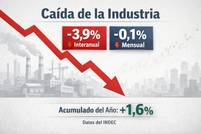 Por otro lado, en la comparación interanual —esto es, frente a diciembre de 2024— la industria cayó un 3,9%, reflejando que en ese mes el nivel de producción fue menor al observado un año antes. Esta caída interanual se explicó por retrocesos en la mayoría de las divisiones que componen el indicador, aunque algunos sectores puntuales presentaron desempeños positivos menores.