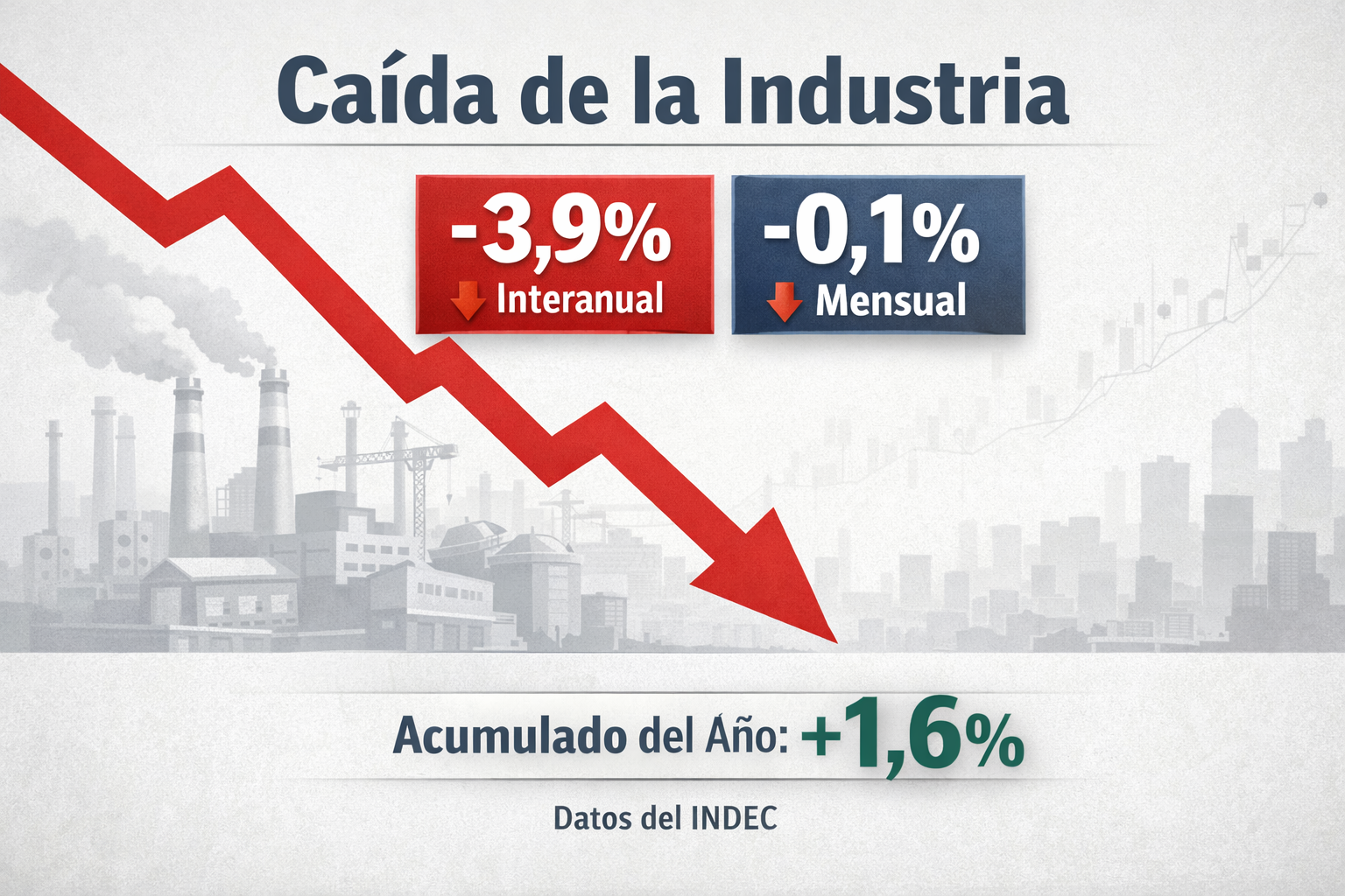 En el mes de diciembre de 2025, el índice que mide el nivel de actividad de la producción industrial manufacturera mostró una variación negativa en dos comparaciones clave. En primer lugar, la serie desestacionalizada arrojó una baja de 0,1% respecto a noviembre, lo que implica una contracción mensual en la producción fabril.
